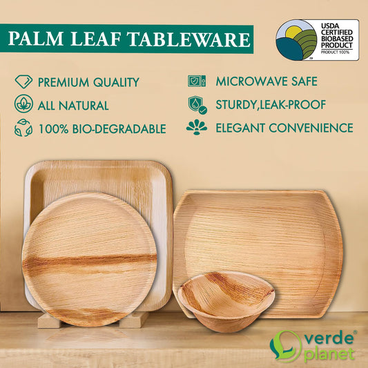 Verde Planet - 10" Square Palm Leaf Plate, USDA Certified, Compostable | Case of 200